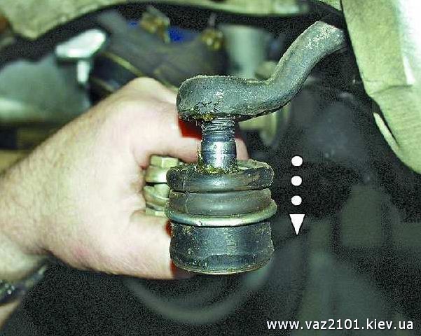 | 5. Выведите палец из ушка рычага. Отсоедините палец внутреннего шарнира тяги таким же способом | |
